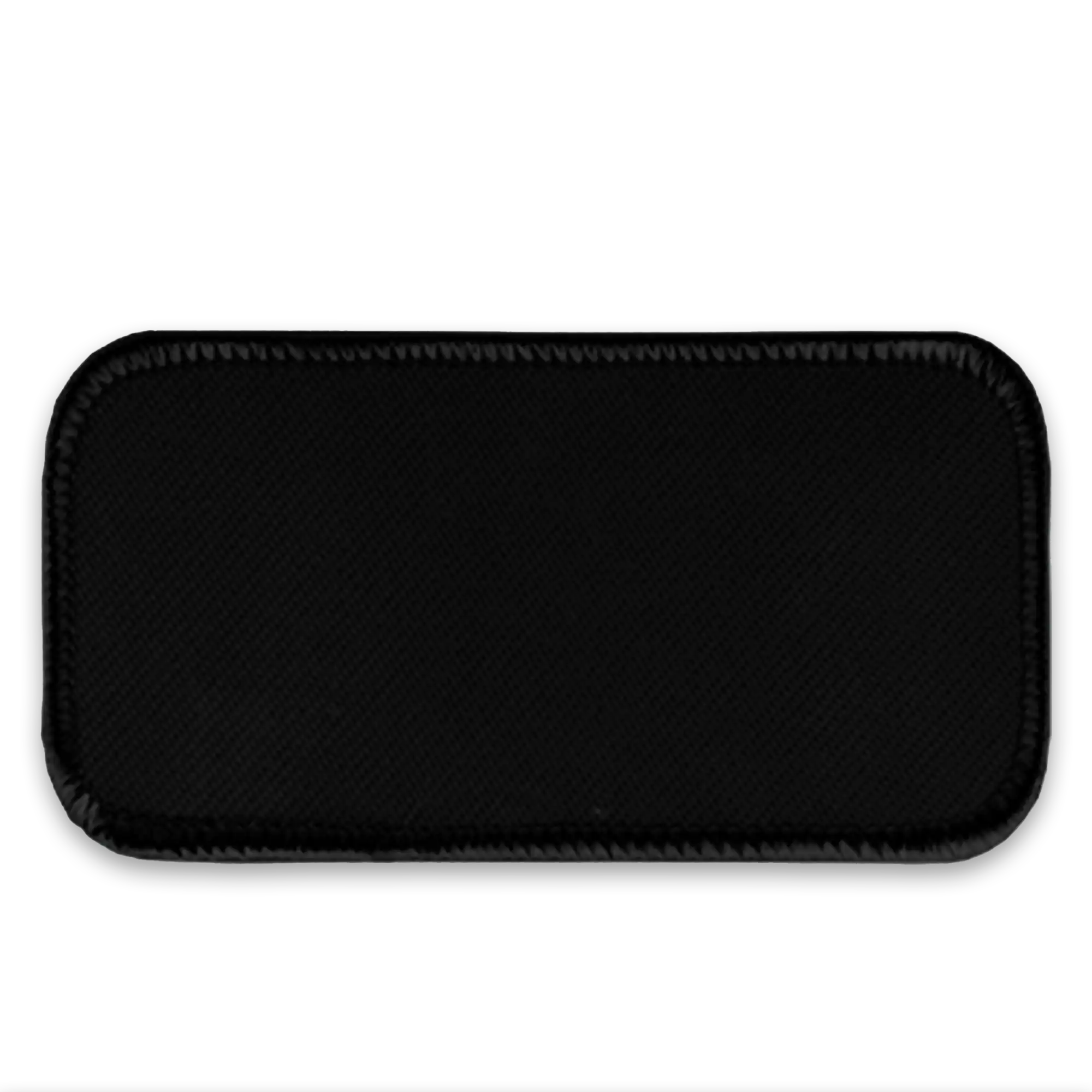 Pack of 25 - 3.625" x 1.625" - Blank Rectangle Patch - Black Fabric with Merrow Black Border - Industrial Backing
