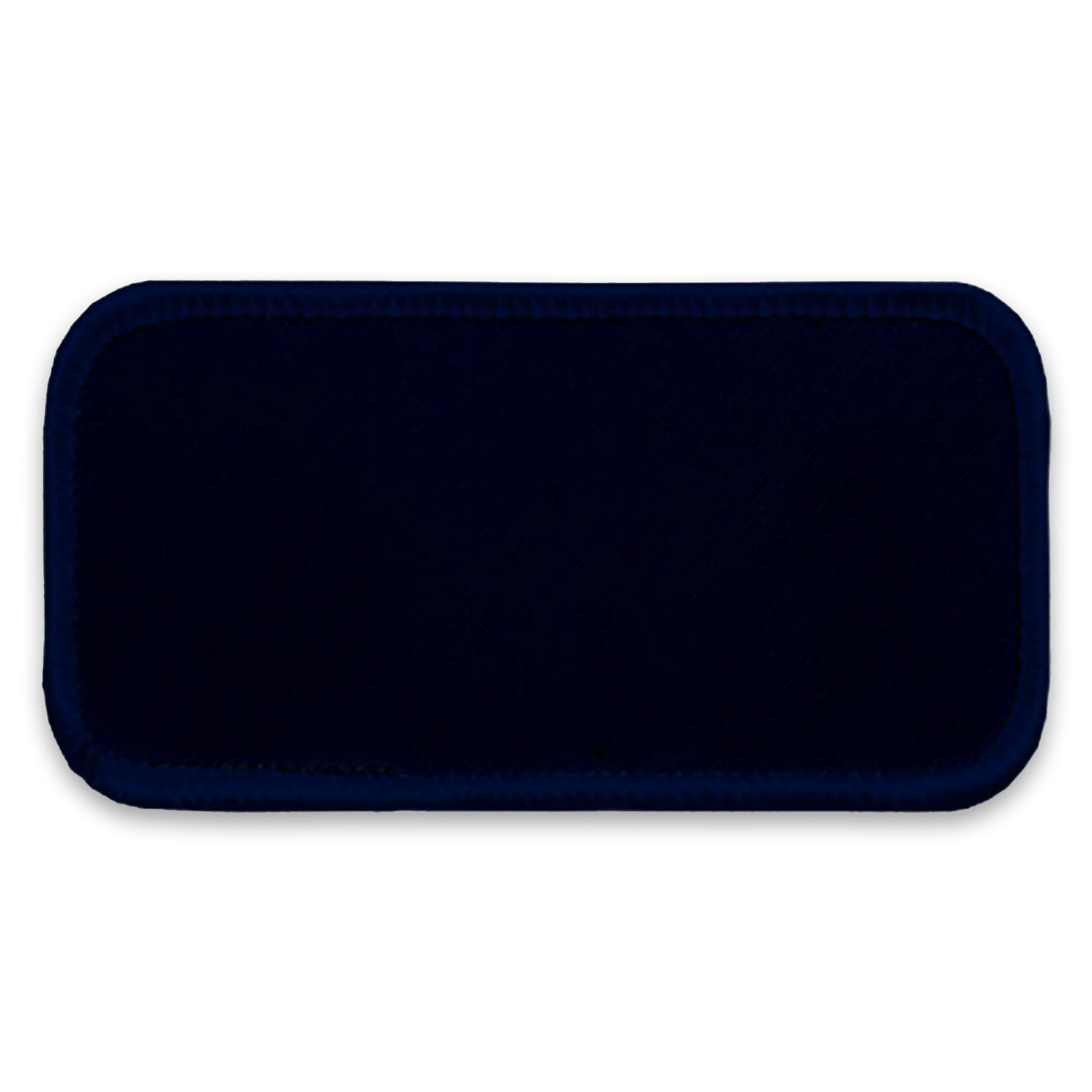 Pack of 25 - 3.625" x 1.625" - Blank Rectangle Patch - Dark Navy Fabric with Merrow Midnight Border - Industrial Backing
