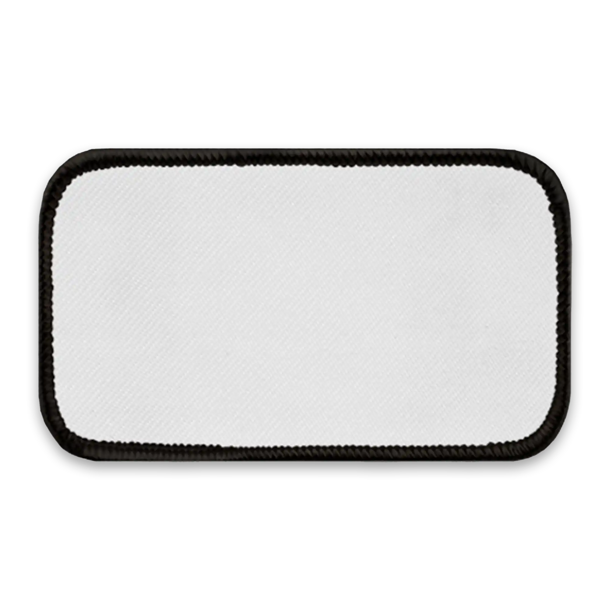 Pack of 25 - 4" x 2" - Blank Rectangle Patch - White Fabric with Merrow Black Border - Industrial Backing