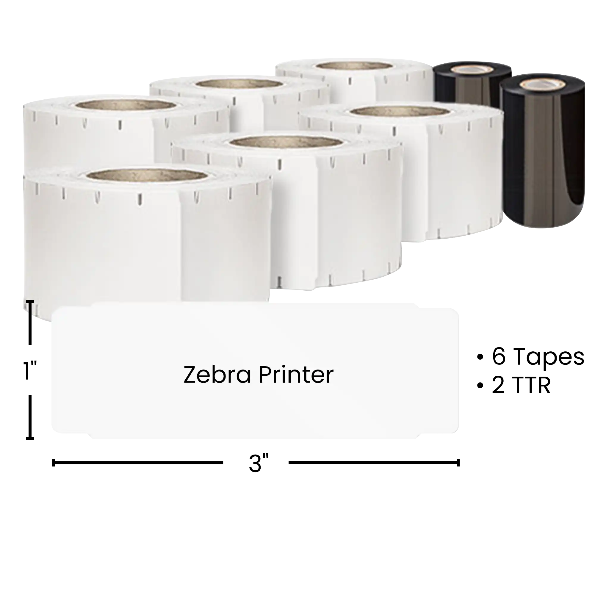 3" x 1" - Thermal ID Kit - 6 Rls 2 TTR 3600 Lb/RL Zebra TSC
