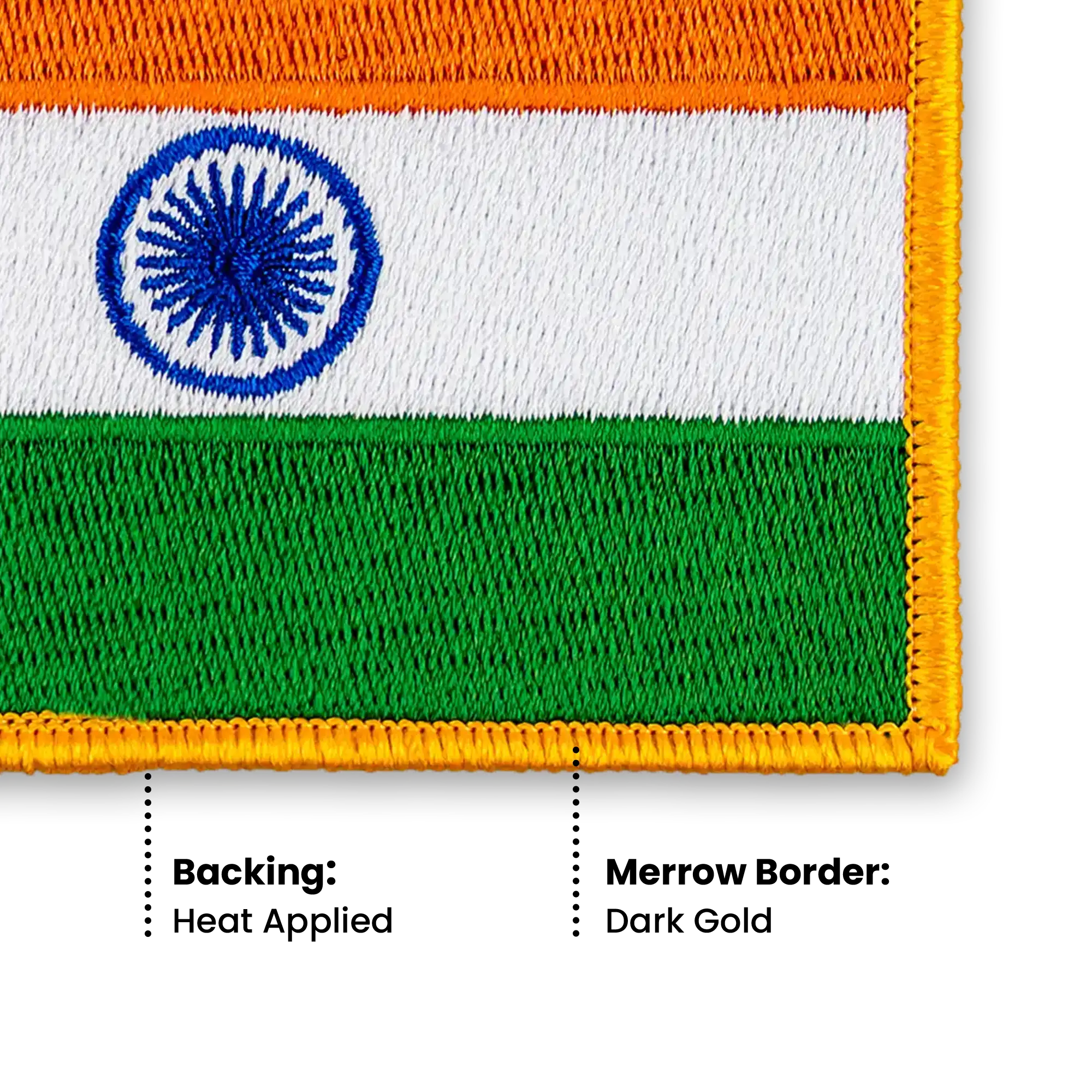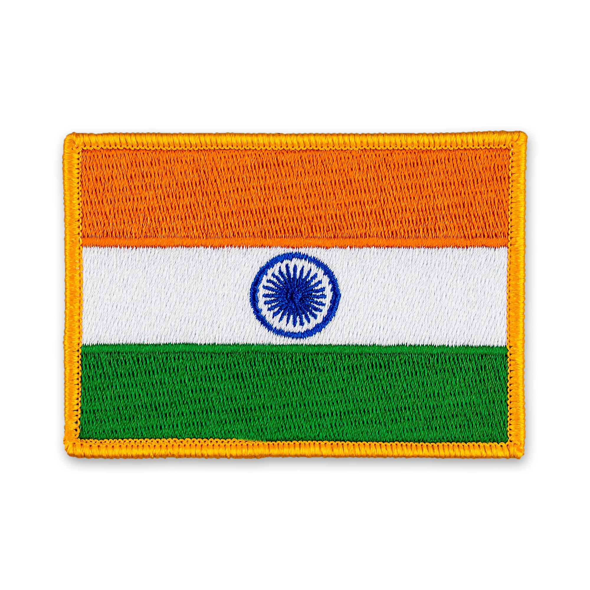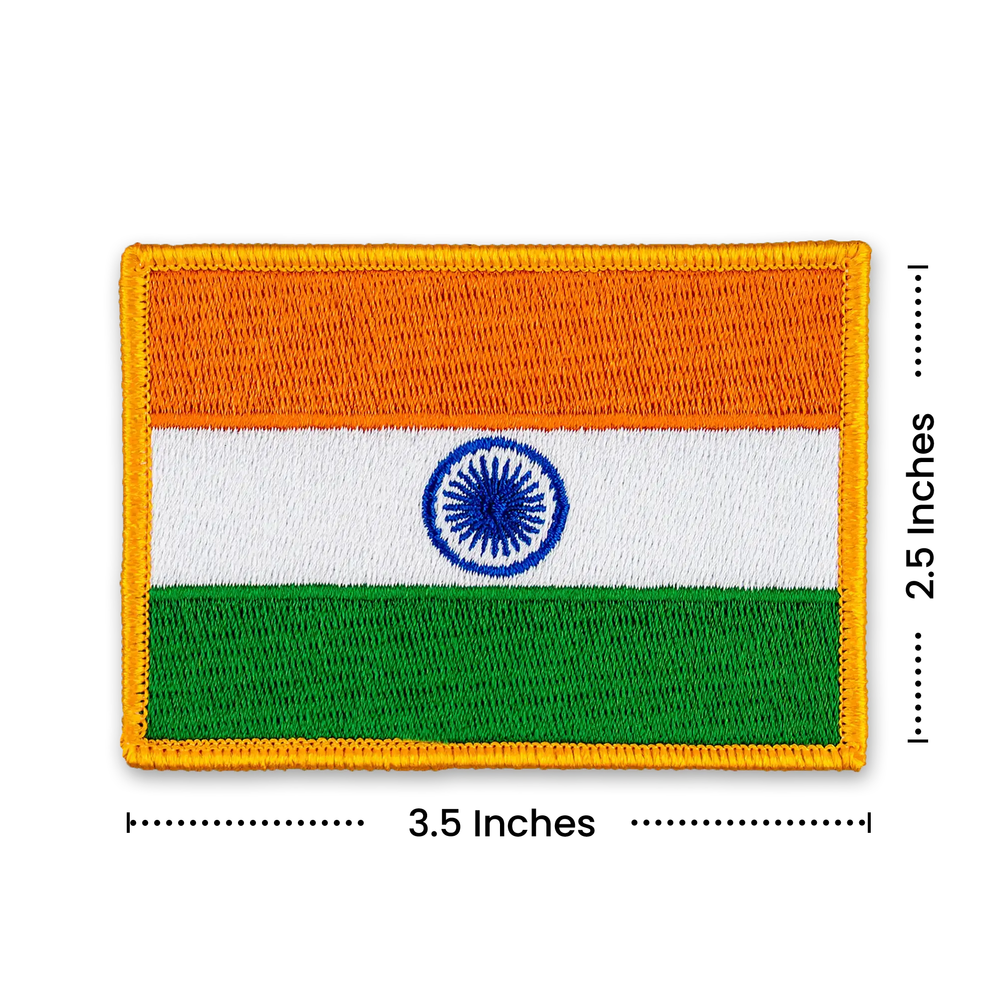 Pack of 25 - 3.5" x 2.5" - Official India Flag Patch - Merrow Gold Border - Heat Applied Backing
