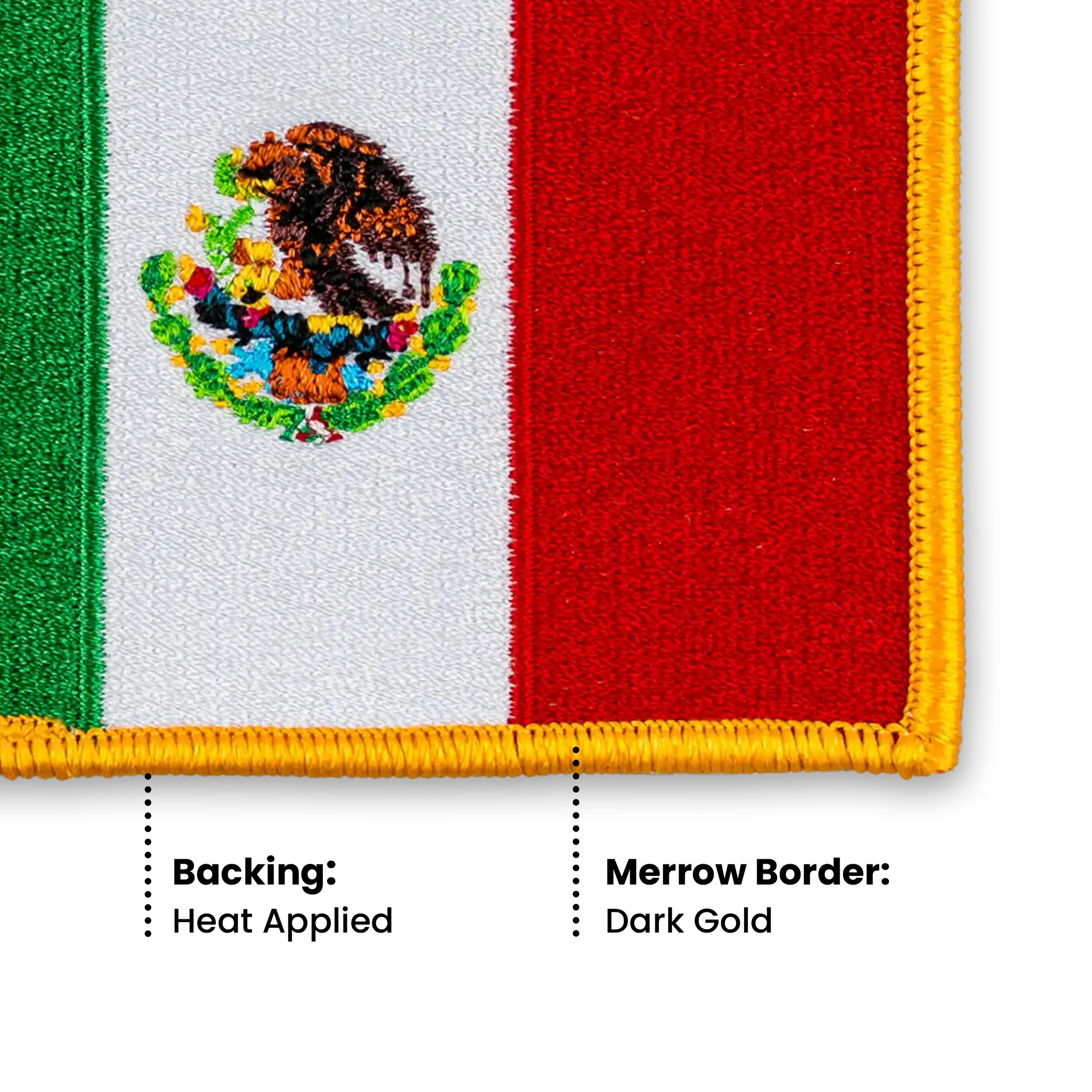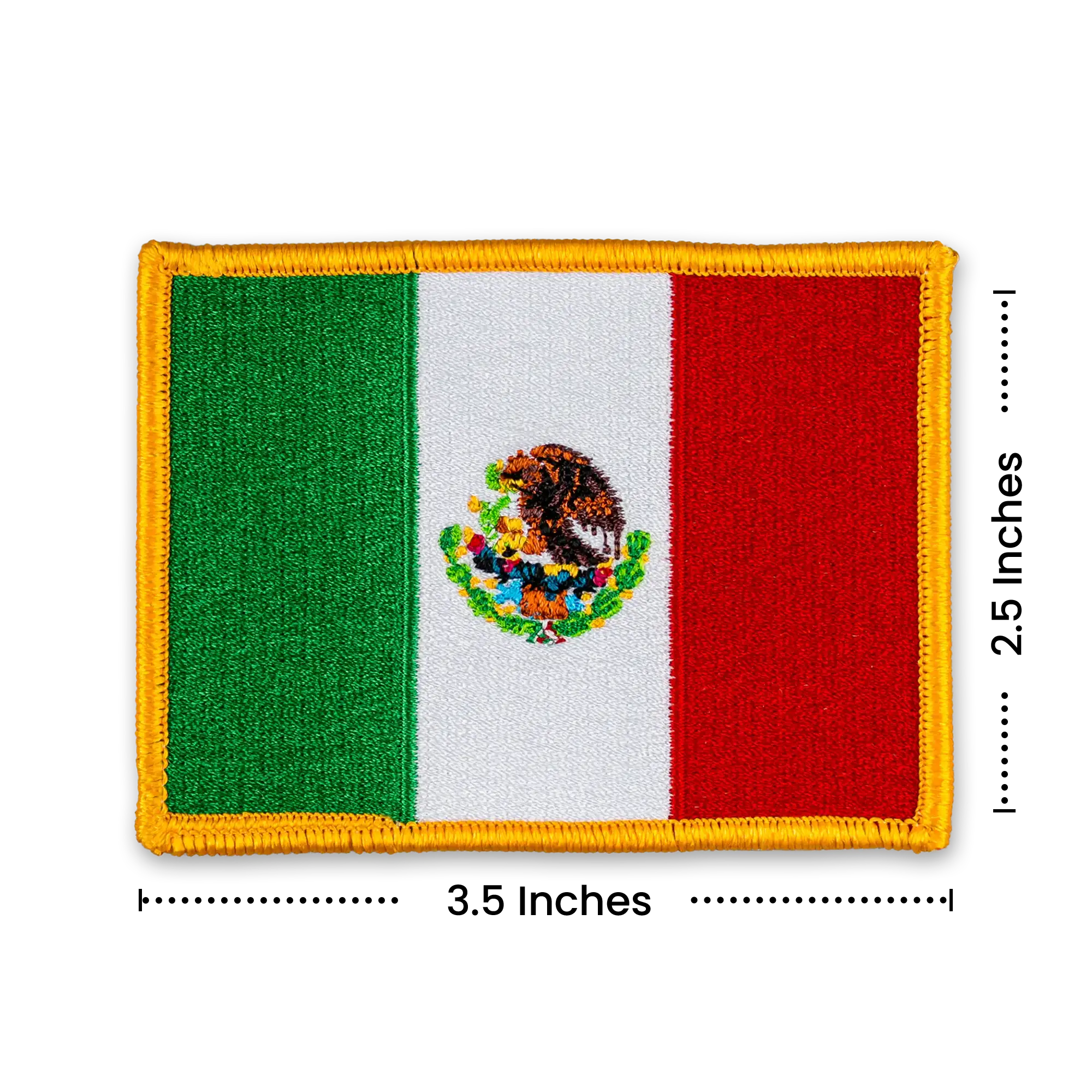Pack of 25 - 3.5" x 2.5" - Official Mexico Flag Patch - Merrow Gold Border - Heat Applied Backing
