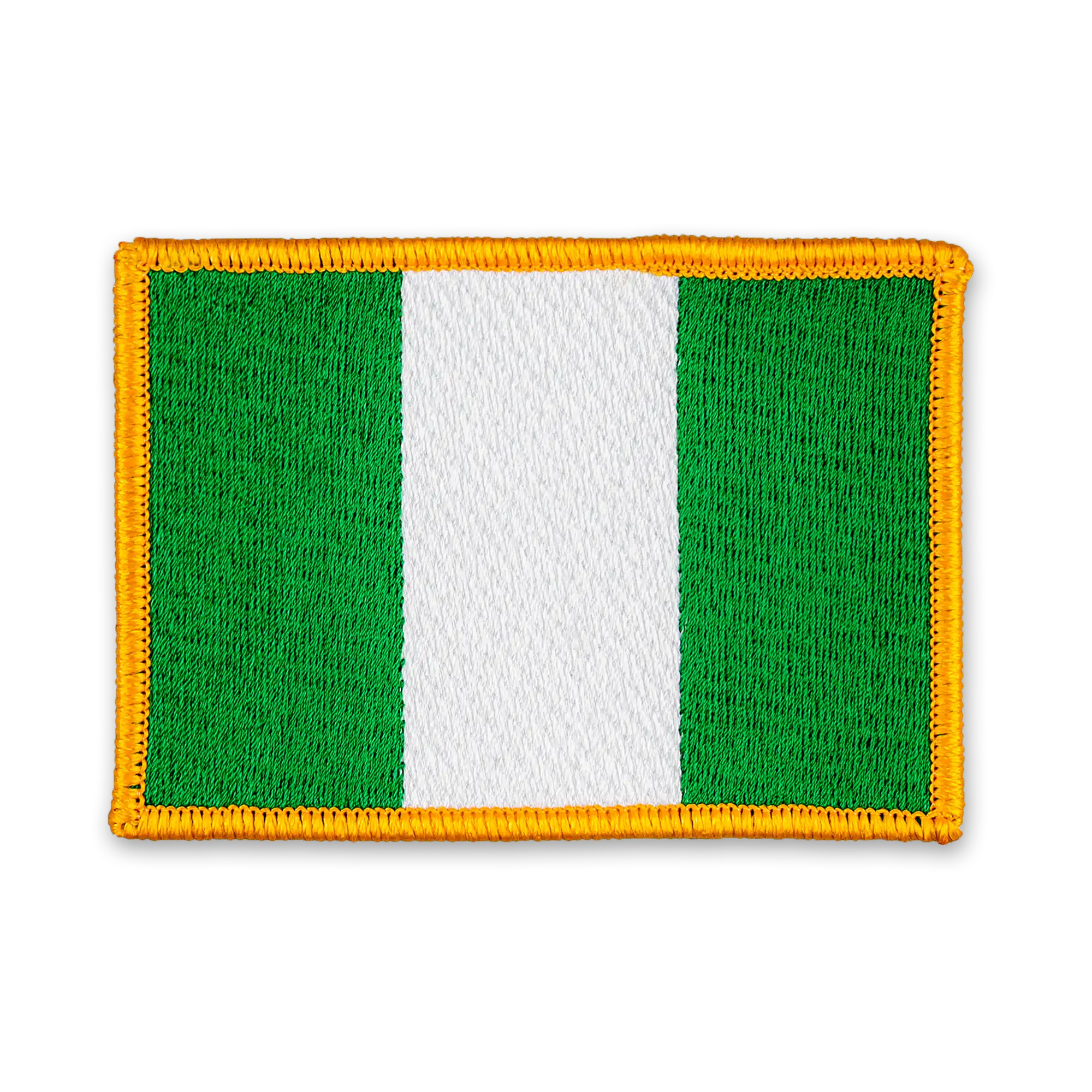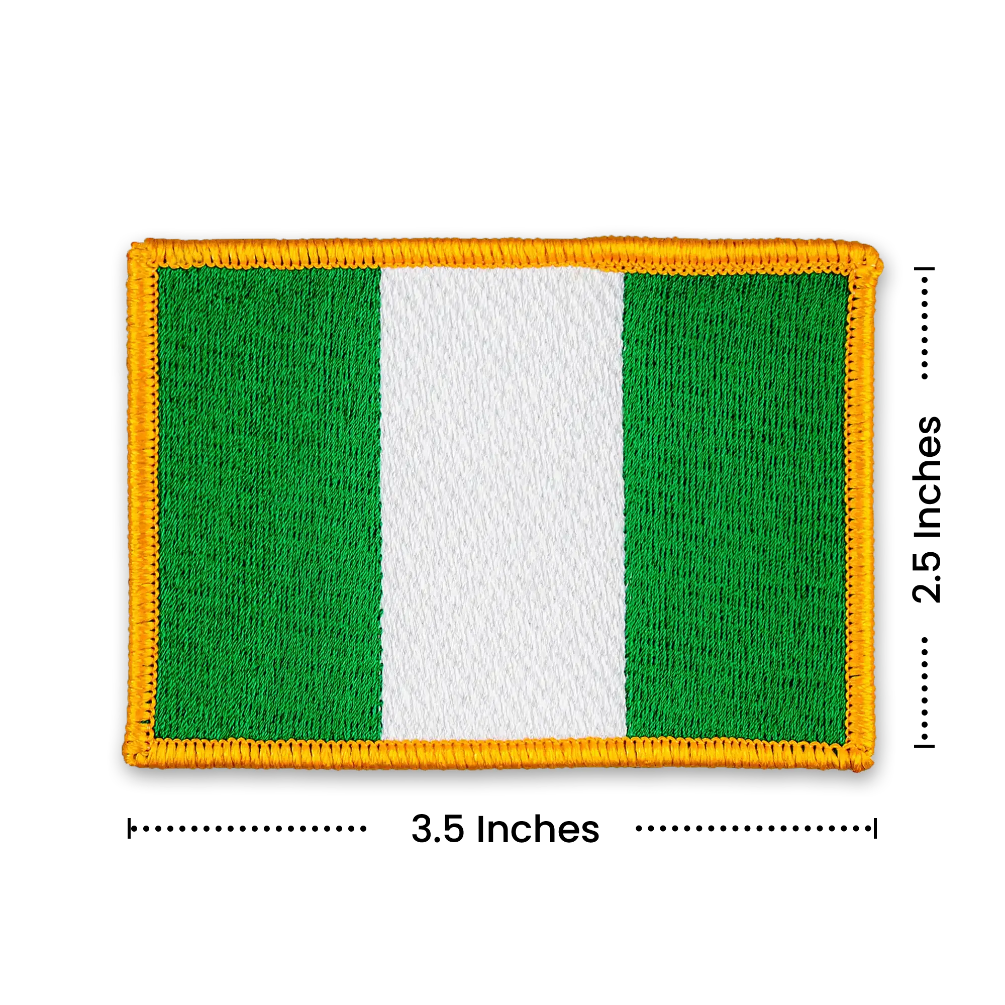 Pack of 25 - 3.5" x 2.5" - Official Nigeria Flag Patch - Merrow Gold Border - Heat Applied Backing