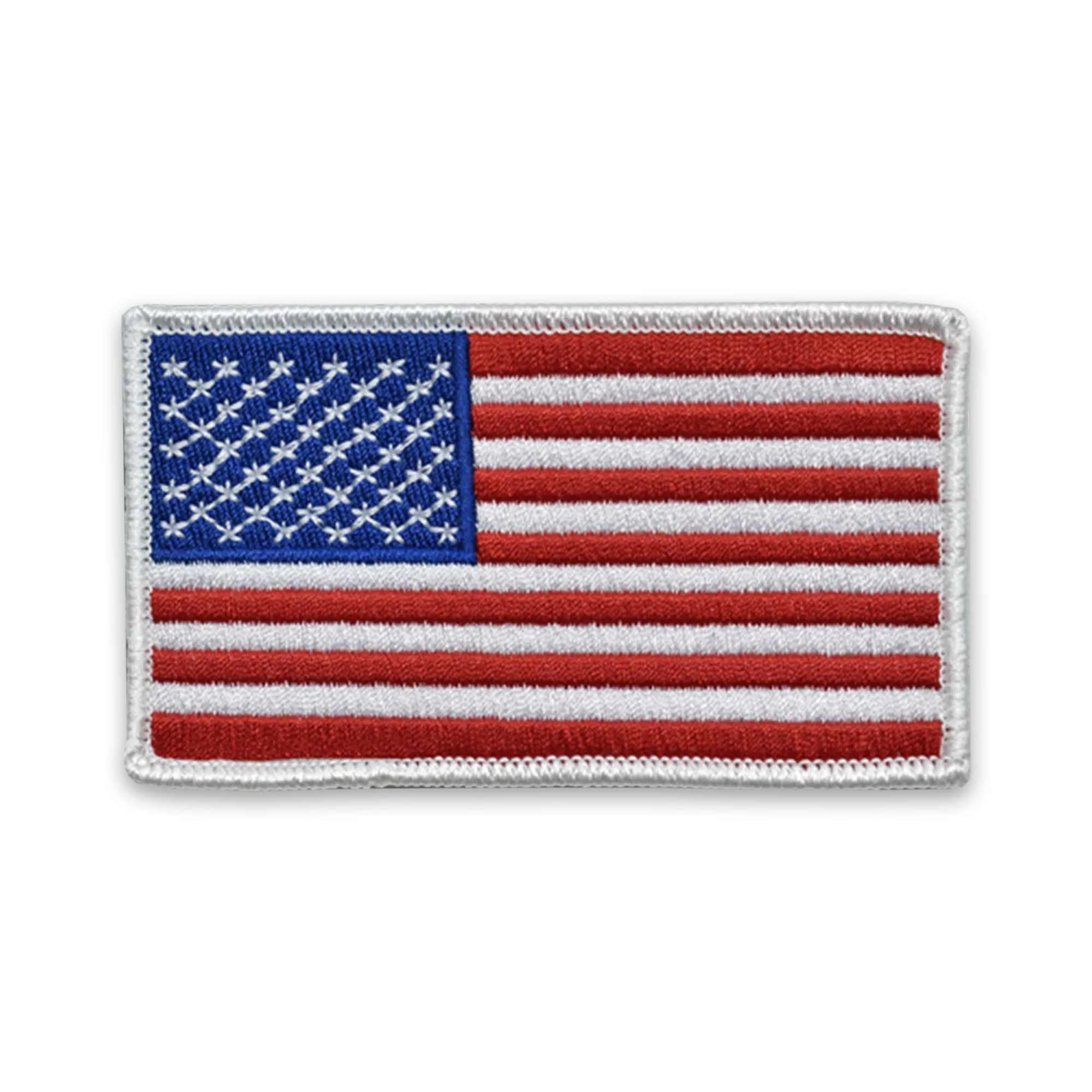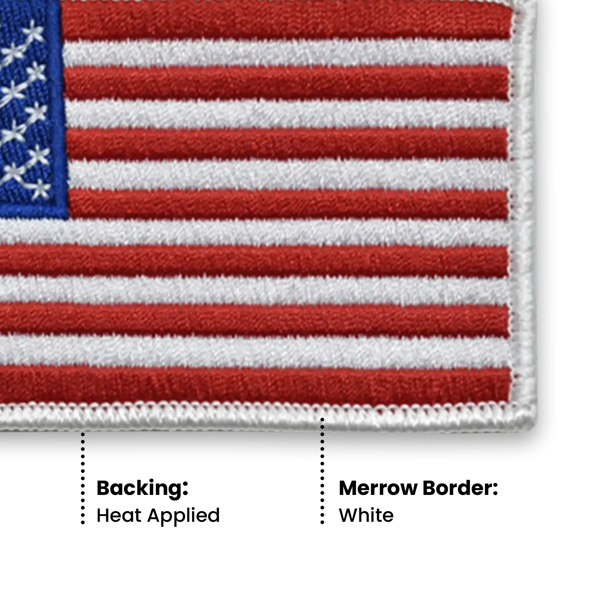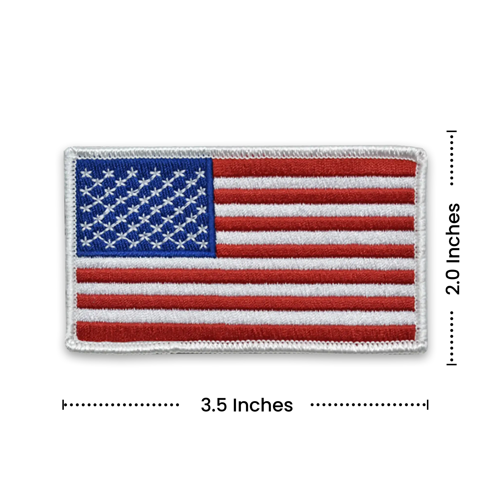Pack of 25 - 3.5" x 2" - Official United States Flag Patch - Embroidered White Border - Industrial Backing