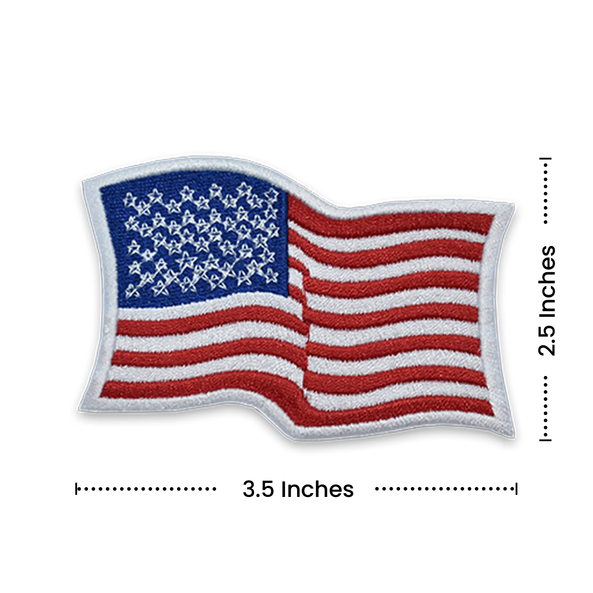 Pack of 25 - 3.5" x 2.25" - Official United States Wavy Flag Patch - Embroidered White Border - Industrial Backing