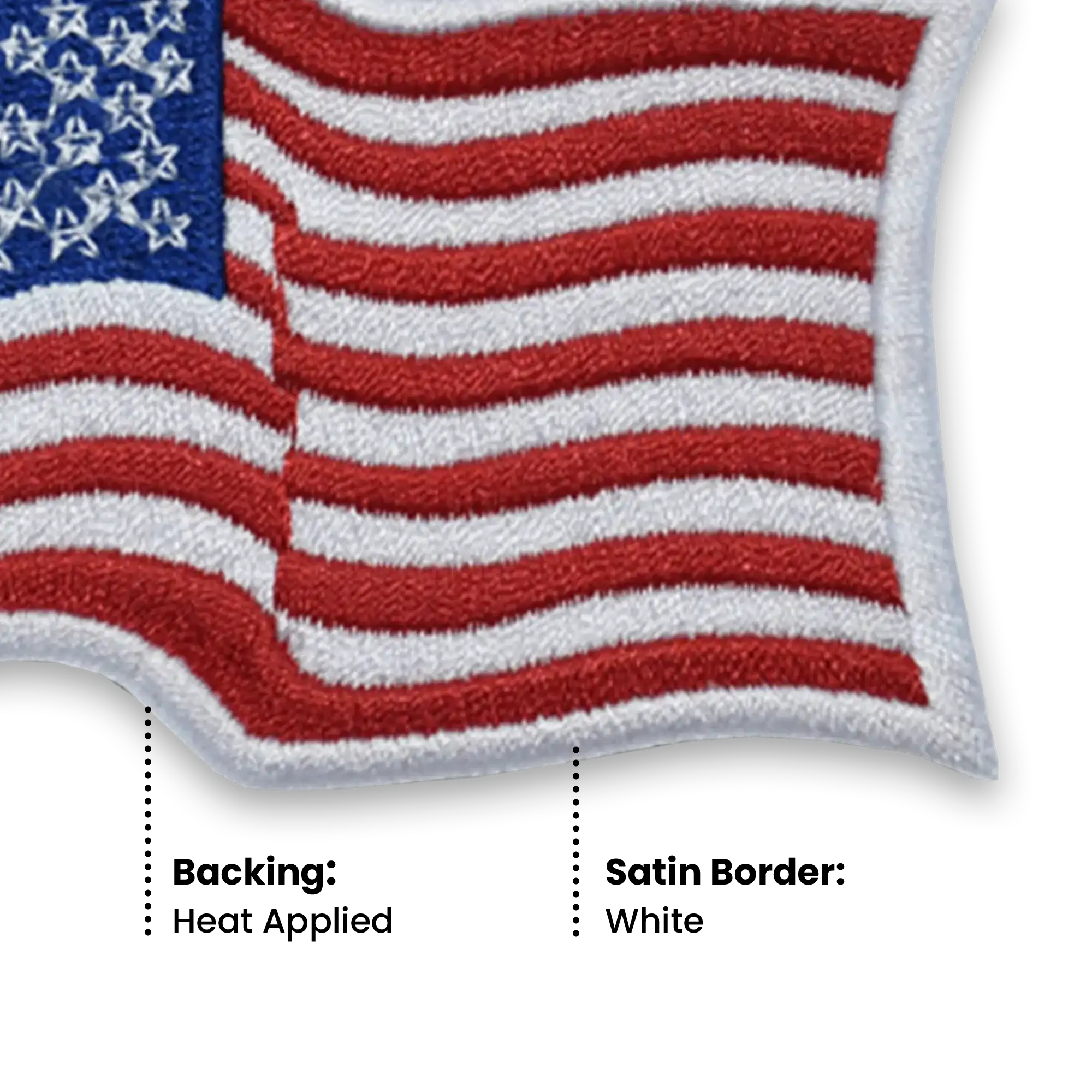 Design: United States flag with crisp details and bold stitching